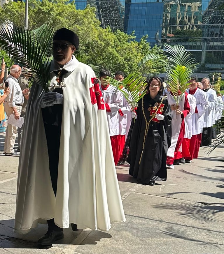 Na Procissão de Ramos realizada na Catedral Metropolitana de São Sebastião do Rio de Janeiro, celebrada por Dom Orani João Tempesta, as Damas e Cavaleiros da OESSJ tiveram uma participação marcante, representando com honra, devoção e profundo compromisso os valores da Ordem. Mais do que uma presença simbólica, foi um verdadeiro testemunho vivo de fé e serviço.